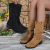 Retro Winter Mid-tube Pile of Mid-tube Boots for Women, 2025 Autumn New Western Martin Boots, Round Toe, Pleated Chimney Boots, Large Size