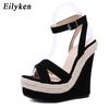 Fashion Eilyken Sexy Open Toe Platform Extreme Women Pumps Stiletto Heels Double Breasted Buckle Pole Dancing Sandals Shoes