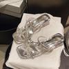 High heels women's summer 2025 new butterfly rhinestone word with crystal heel slippers square head thick heel slippers women
