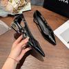 Fashion Cutout Low Heel Single Shoes Women's Pointed Toe Shallow Mouth One Strap Non-Slip Wear-Resistant Block Heel Shoes