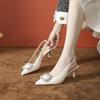 Women's Purple High Heels Stiletto Elastic Straps Open Back Pointed Toe Soft Sole White Sandals