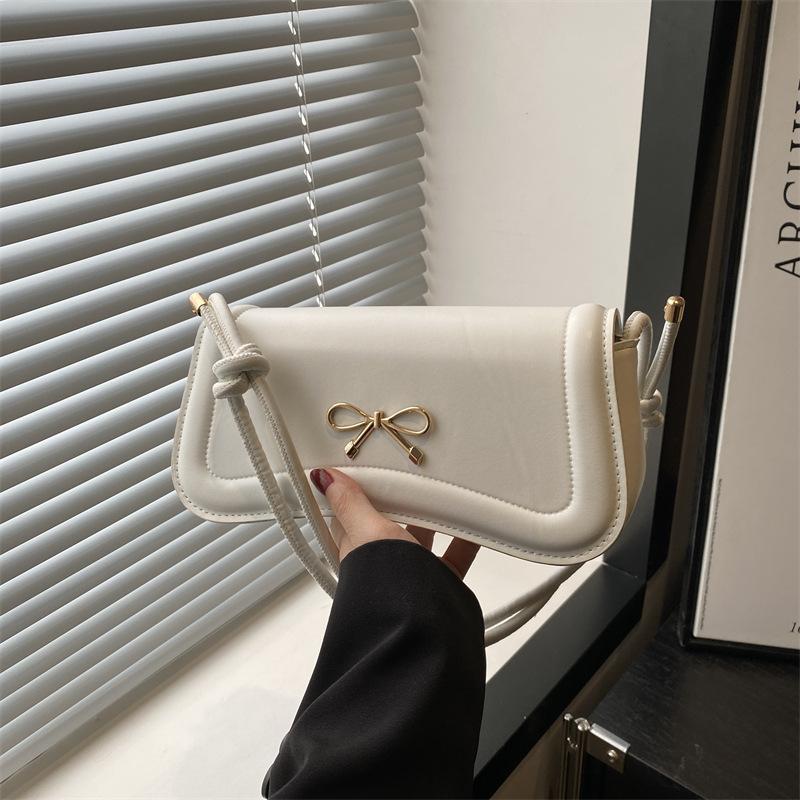 Korean version bow indentation 2025 new trendy fashion solid color design casual messenger portable small square bag women