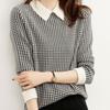 Nové retro univerzální dámská kostkovaná košile s límečkem Kancelářské dámské rovné halenky Pracovní oblečení Spodní topy