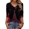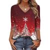 Trendy Vintage 3/4 Sleeve Top For Women,Ladies Casual Three Quarter Sleeve V-neck Printed T-Shirt Blouse