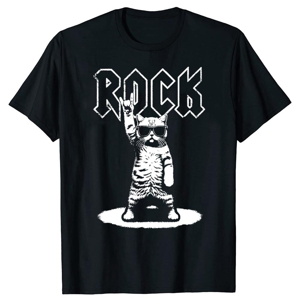 Vtipná retro kočičí rocková hudební trička pro muže a ženy, čistá bavlna, humor, streetwearové tričko s krátkým rukávem, unisex volné oblečení