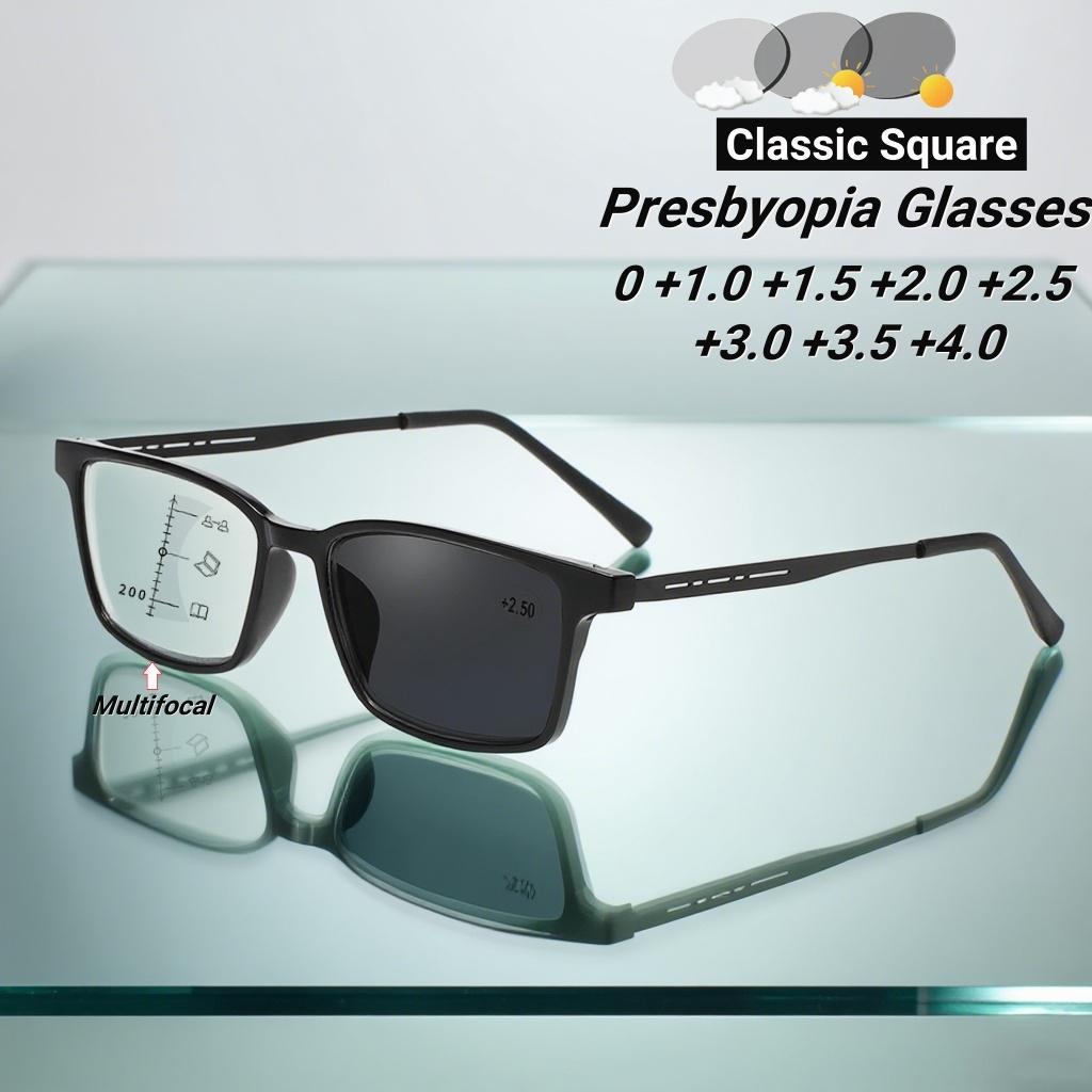 Classic Square Business Multifocal Photochromic Presbyopia Glasses Long Distance Dual-Use Eye Protection Anti-Blue Light Glasses