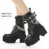 8.5cm Heels 2024 New Thick Heel Side Zipper Thick Bottom Rivet Belt Buckle Muffin Women's Chain Boots Lhx