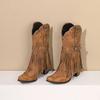 Women Genuine Leather Ankle Boots Round Toe Block Mid Heels Tassel Zipper Western Short Booties Lady Fringed Shoes Autumn Winter