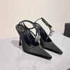 High Heels New Spring Temperament Small Square Toe Crystal Buckle Straight Strap Stiletto Wrapped Head Sandals