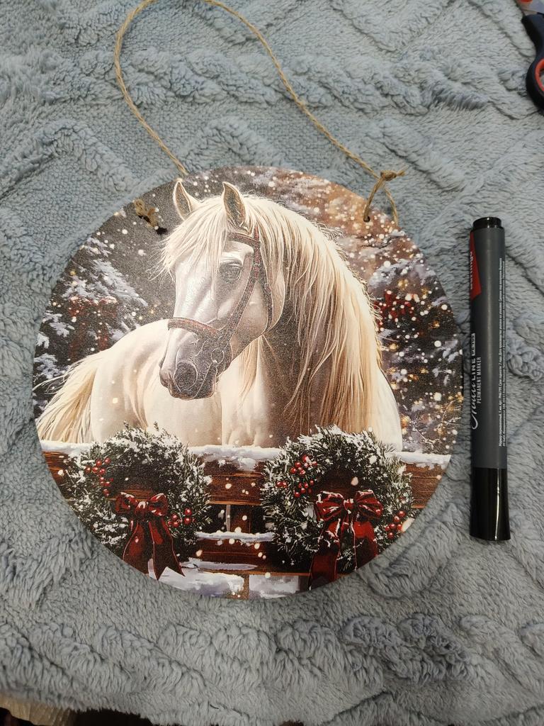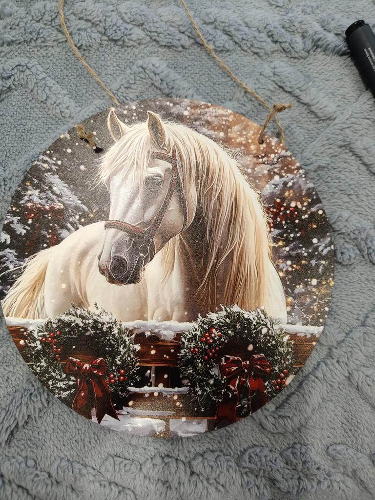 Ζεστό Χειμωνιάτικο Ξύλινο Χριστουγεννιάτικο Σημάδι με Μοτίβο Λευκού Αλόγου, Χριστουγεννιάτικο Στρογγυλό Σημάδι για Διακόσμηση Εξώπορτας/ Τοίχου, Ιδανικό Χριστουγεννιάτικο Δώρο