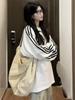 Letter Printed Striped Women's T-shirt Round Neck Minimalist Long Sleeved Pullover New Korean Loose Autumn Woman Top
