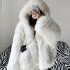 Autumn Winter Oversized Warm Shaggy Hairy Faux Fur Coat Women with Hood Loose Casual Fluffy Jacket