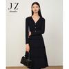 JZ Anna Coco Elegant V-Neck Puff Sleeve Wool Blend Sweater Dress