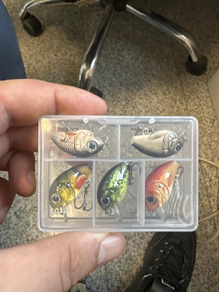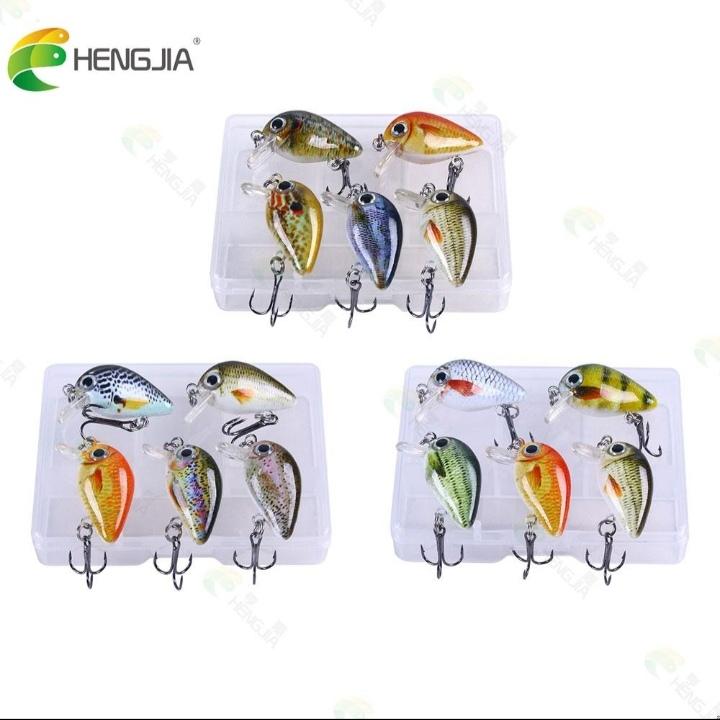 HENGJIA 5pc Fishing Lure Mini Crankbait Floating Wobbler Fishing Hook Set with Fishing Tackle Box