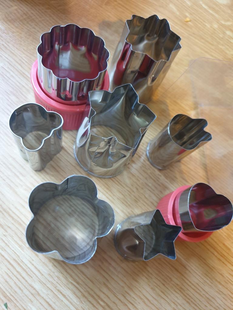 The cutters are great. Sharp, stiff - they cut without problems in practically any material (although in the case of hard carrots you have to sweat a little). Overlays that make it easier to grab punch dies are just a great idea. It is a pity that the patterns differ from those shown in the offer. I counted on flowers in two sizes, I only have large ones: /