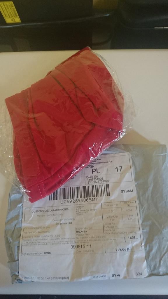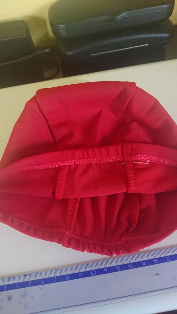 Water-resistant cap made of polyester. A bit too small for my head. Maybe it will be good for a child.