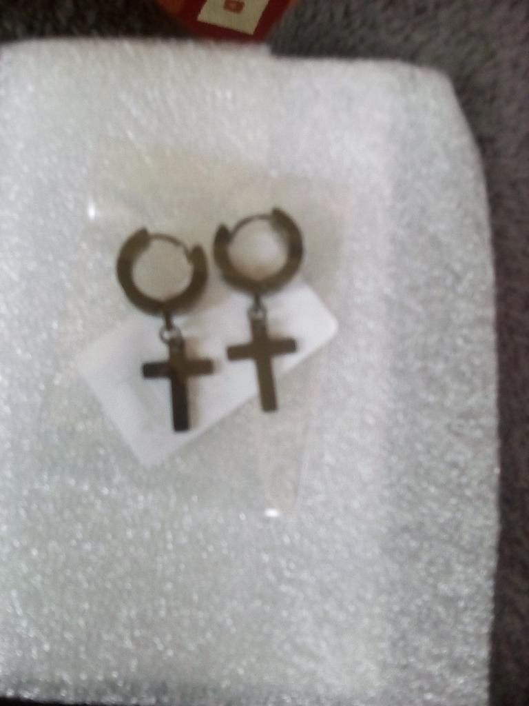 Lady's Men's Stainless Steel Cross Drop Dangle Huggie Hinged Hoop Earrings