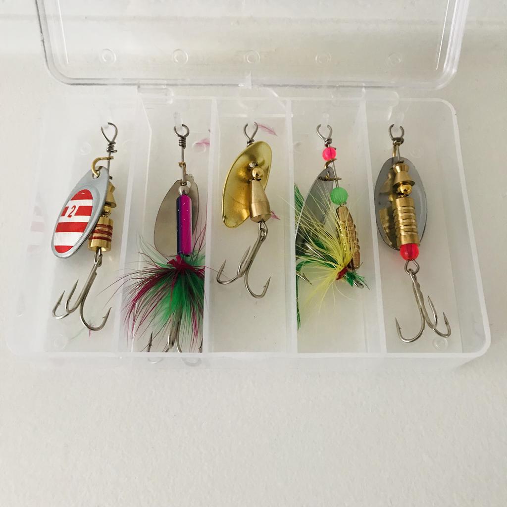 Fishing bait I bought this sequin fishing bait at the store: "Fisherman world". There are five pieces, they are delivered in a plastic box. In which you can easily store them. They are made of metal. The metal material is wear-resistant and durable, and can be used for a long time. It is designed for big fish. I have received it within 3 weeks 👍 Thank you for reading! Xoxo Lisa 🌸
