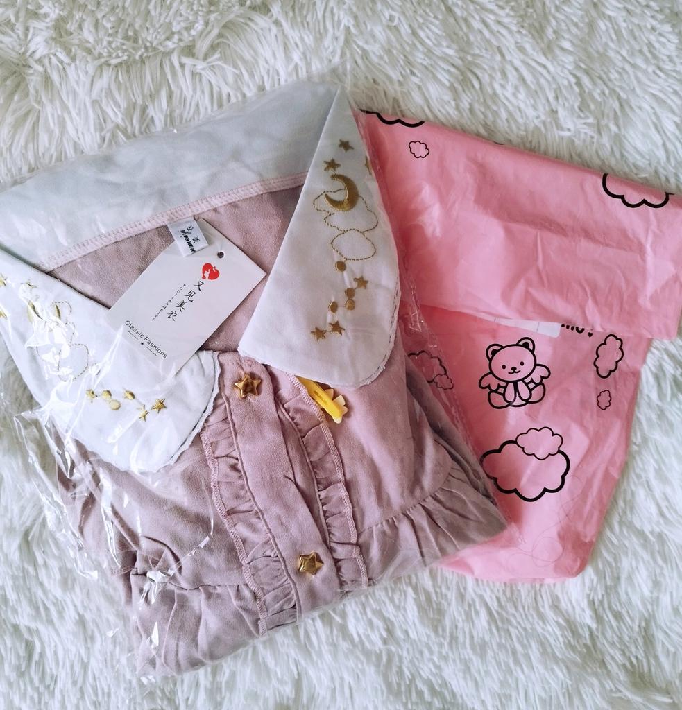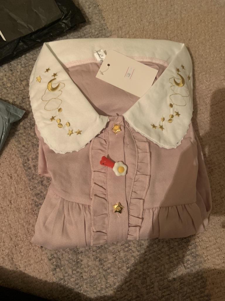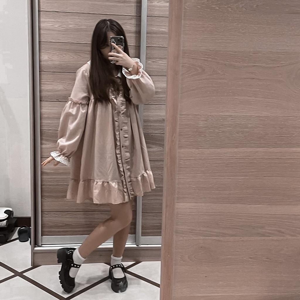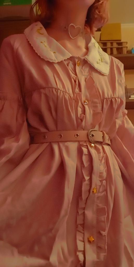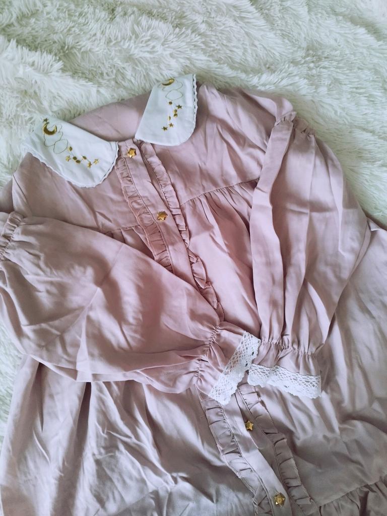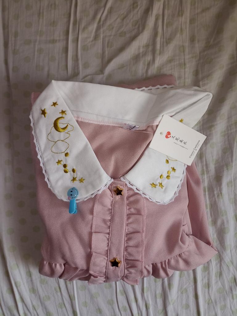 Japan Women Pink Lolita Style Mini Party Dress Ruffles Stars Shirt Dress Cute Kawaii Cosplay Uniform