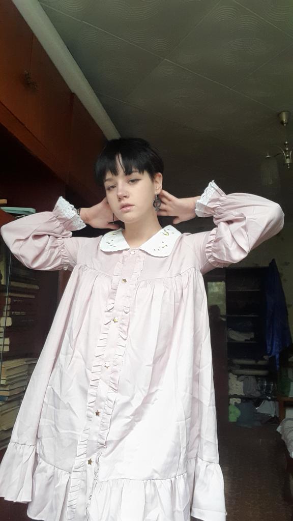 It's so pretty, made of cool material. I thought it would be thicker, because on the website they wrote that it's autumn and winter dress. Still cool.