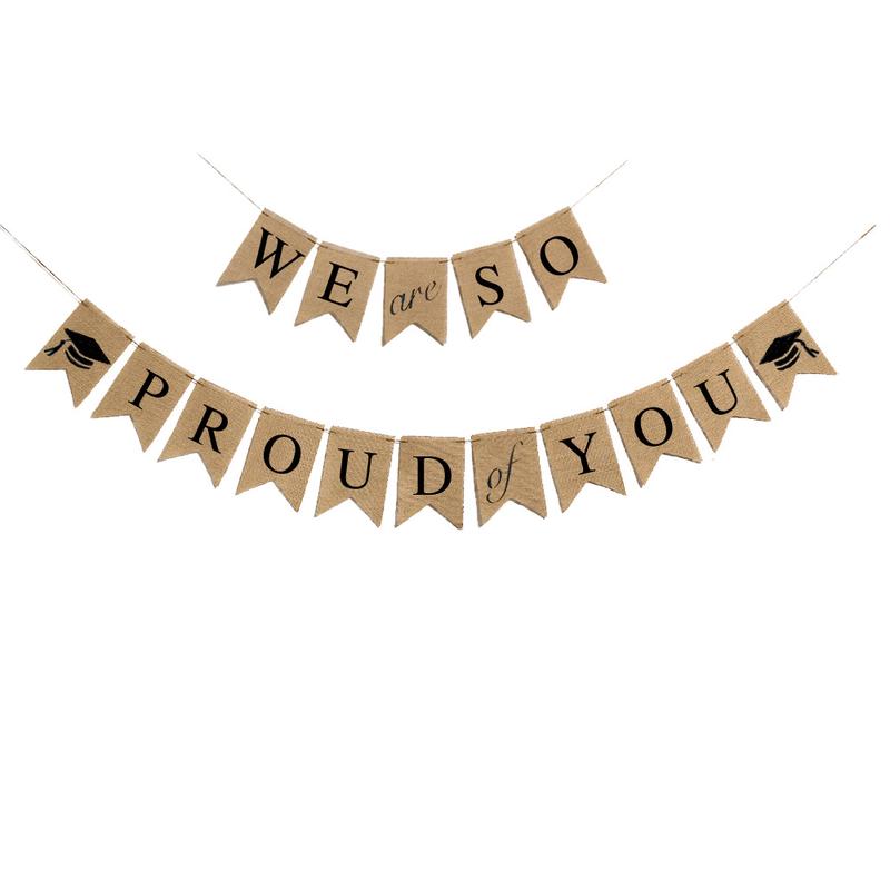Burlap Banner Delicate We Are So Proud of You Pull Flag Graduation Season Bunting Party Decoration