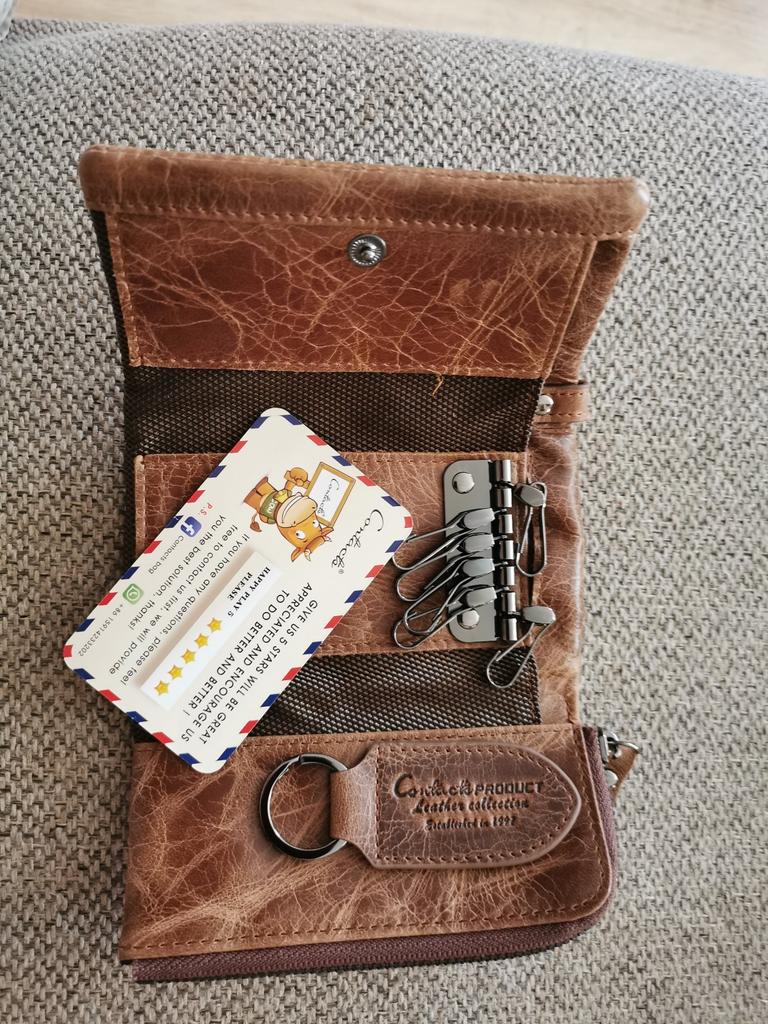 CONTACT'S Genuine Leather Men Key Wallet Thin Male Purse Coin Pocket Key Holder Man Pouch