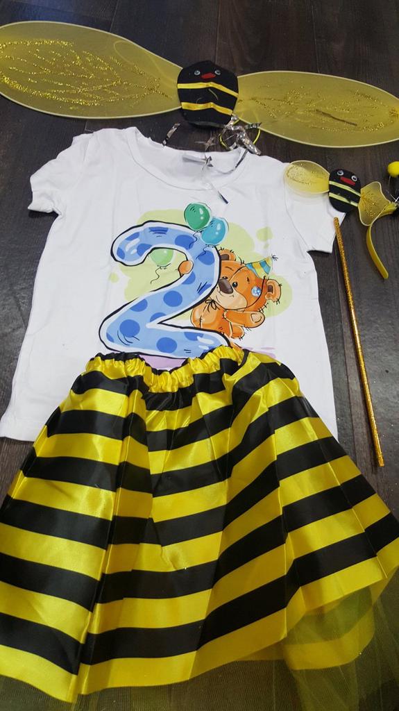4Pcs/Set Kid Fairy Costume Set Ladybird Bee Glitter Cute Wing Striped Layered Tutu Skirt