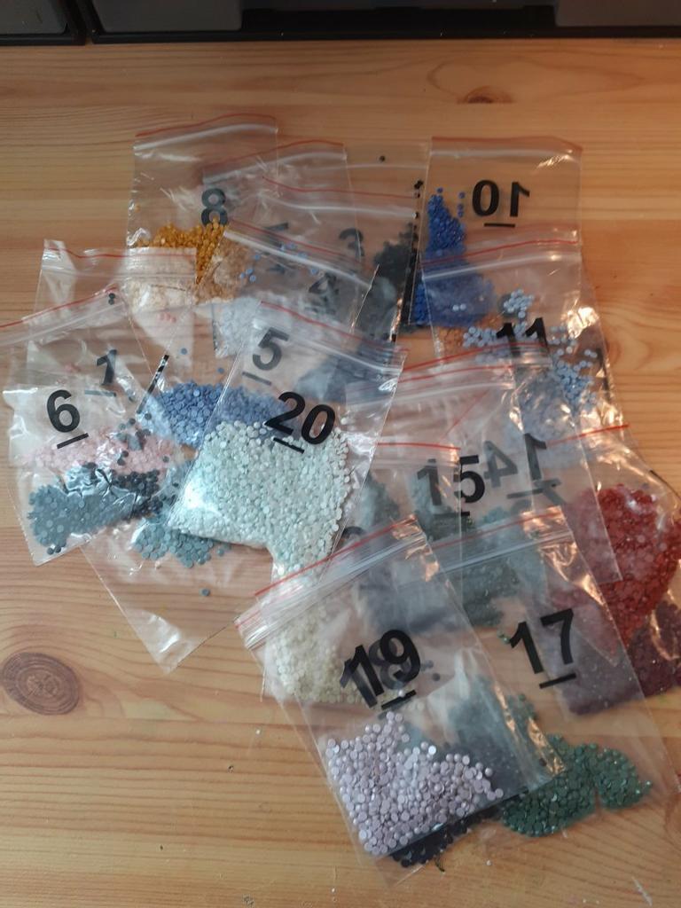 In order to avoid the lack of diamonds, please don't throw away the remaining diamonds after you put the corresponding symbols, put them in a small self-sealing bag in the package, and write the diamond number. After you have finished the whole plastering, you can throw away the extra diamonds, or you can keep it yourself, thanks!
