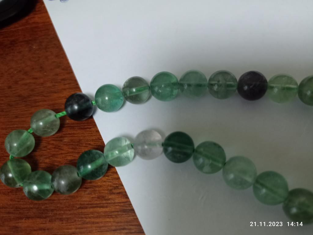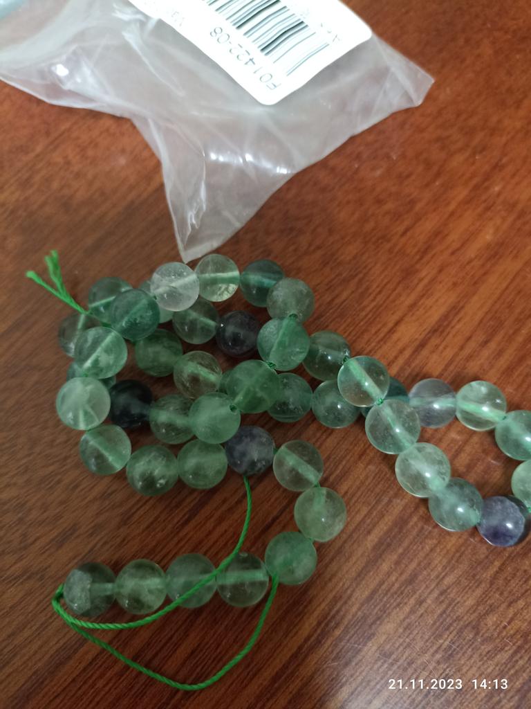 Everything corresponds to the photo and description. The beads are wonderful, real fluorite. Very pleasant natural coloring.