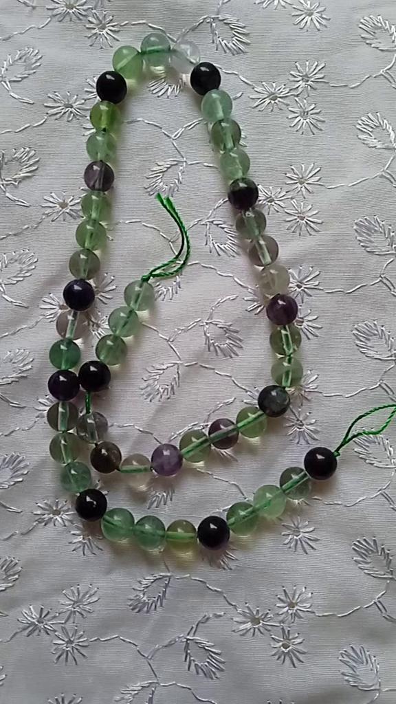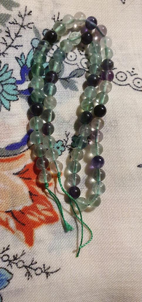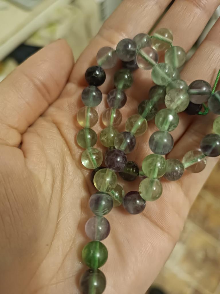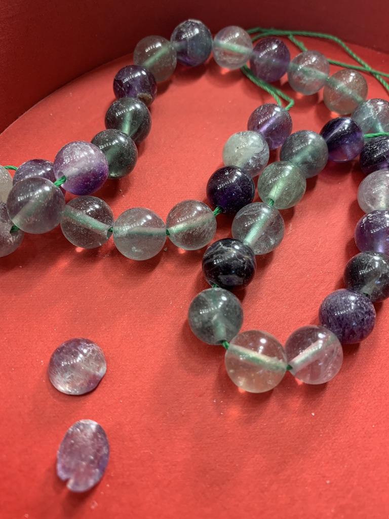 We've seen better quality fluorites. 38 beads, poorly polished, some chips, but the stone is natural