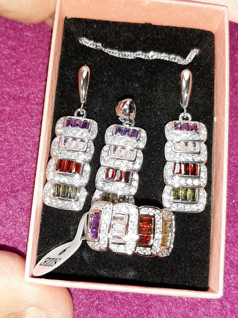 It arrived perfect 👌 very pretty and elegant the only thing that 🤔 the colors of the stones of the pendant and the screens 😔 do not start as green image, ext red. But either way it looks fine.