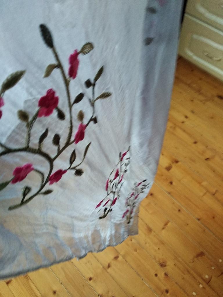The embroidery is beautiful, but one row of flowers is cut in half.