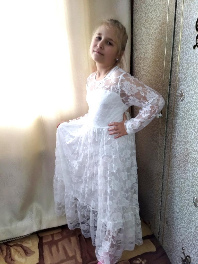 YUBAOBEI 2-12 Yrs Girl Lace Long Dress Sweet Big Bow Long Sleeve Baby Kids Princess Wedding Prom Party Dress