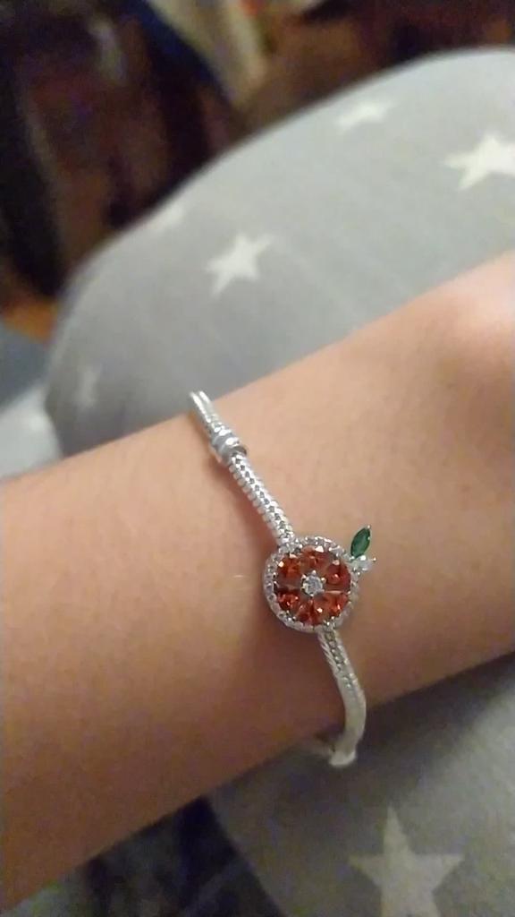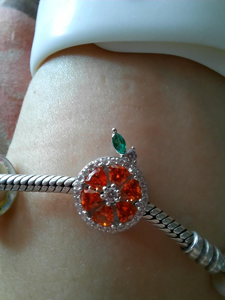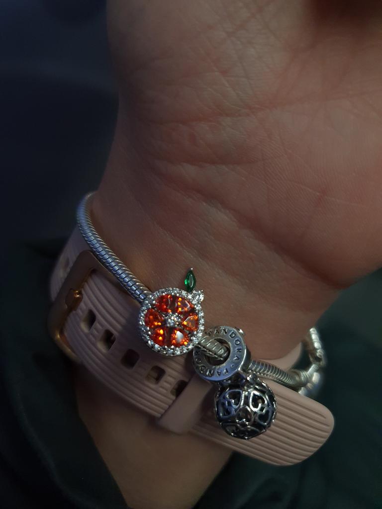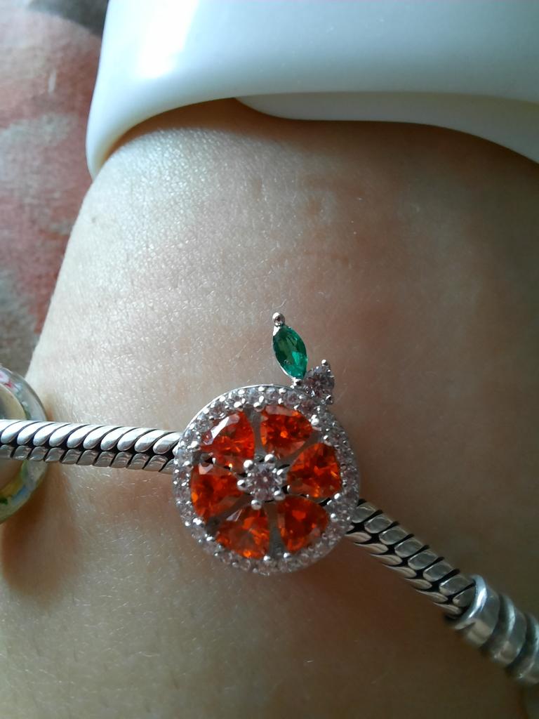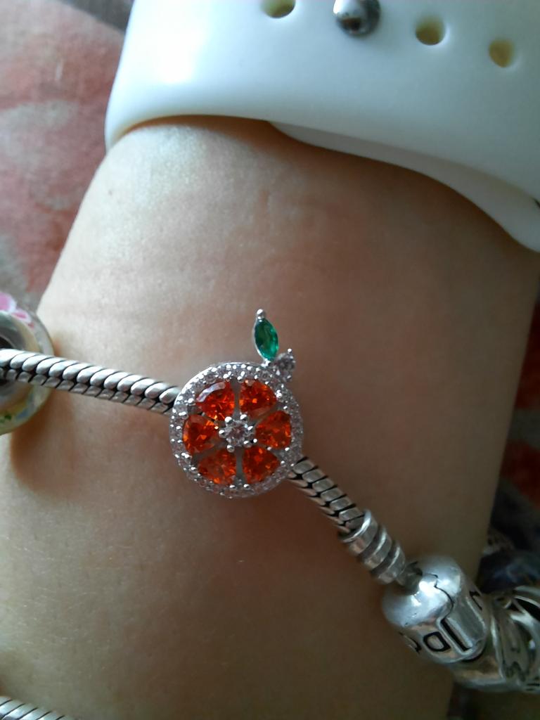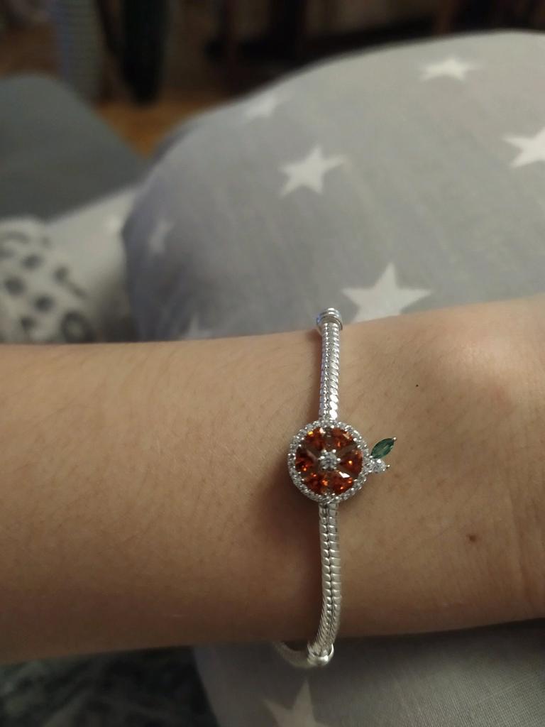WOSTU Genuine 925 Sterling Silver Red Grapefruit Round Charm Fit Original Bracelet Necklace Beads