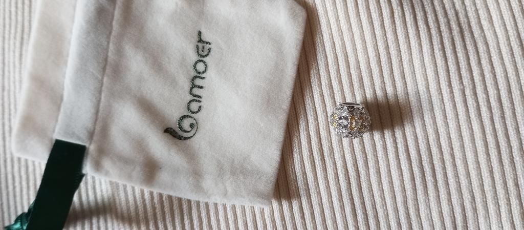The quality of the charm is excellent, it is not magnetic, which means that silver is free of impurities in theory. Stones areshining excellently!. A branded bag came as a gift, not the heart charm.... It's a pity.