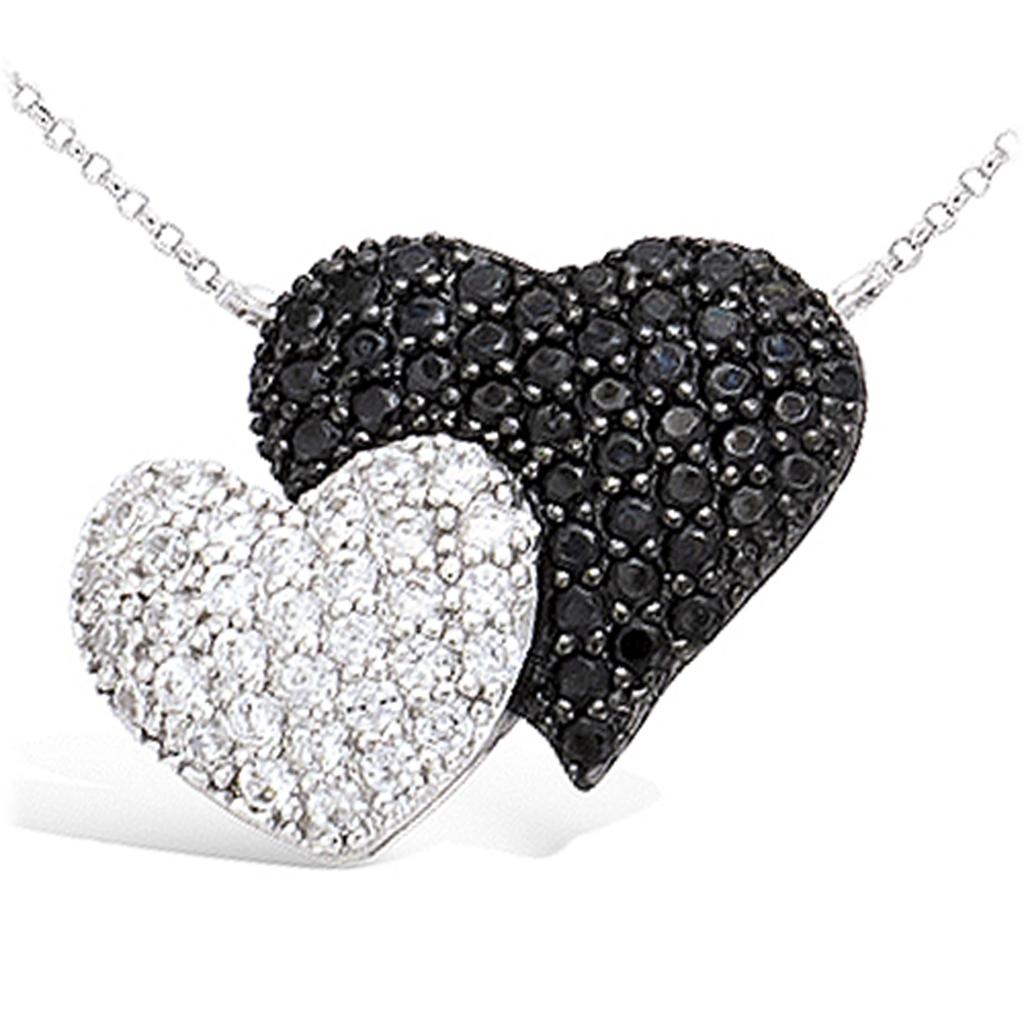 Les Trésors De Lily [J8630] - Silver Necklace 'Love Divine' Black White (rhodium-plated) - 19x16 Mm