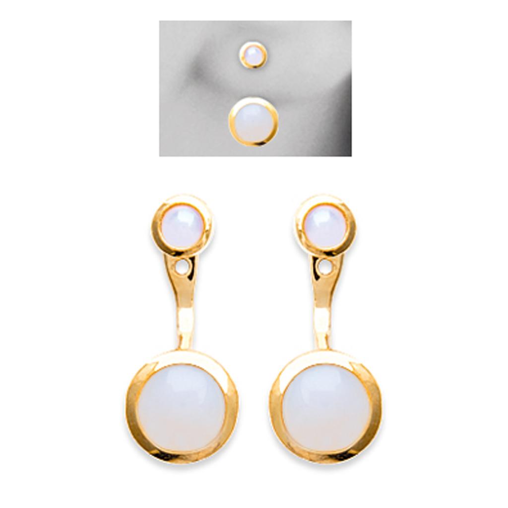 Les Trésors De Lily [P9291] - Rose Gold 'Princess Opal' Gold-plated Lobe Contour Earrings - 4 and 7 Mm
