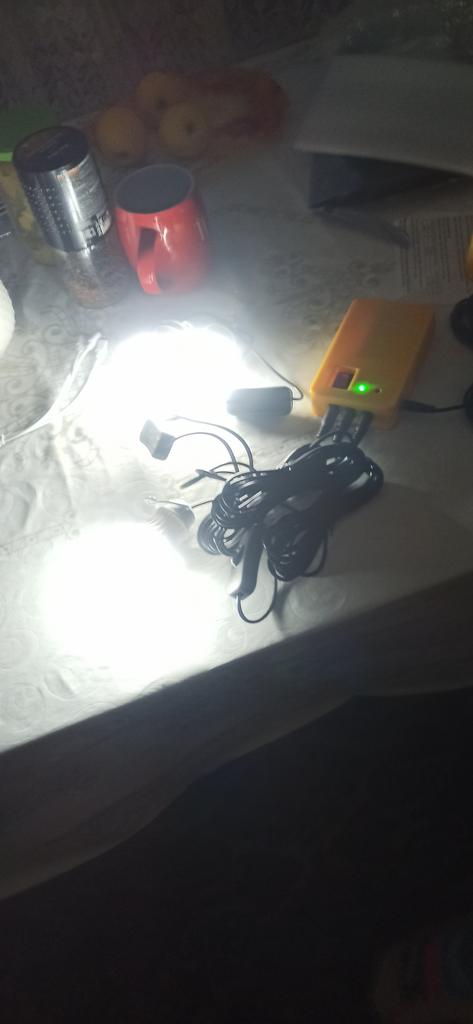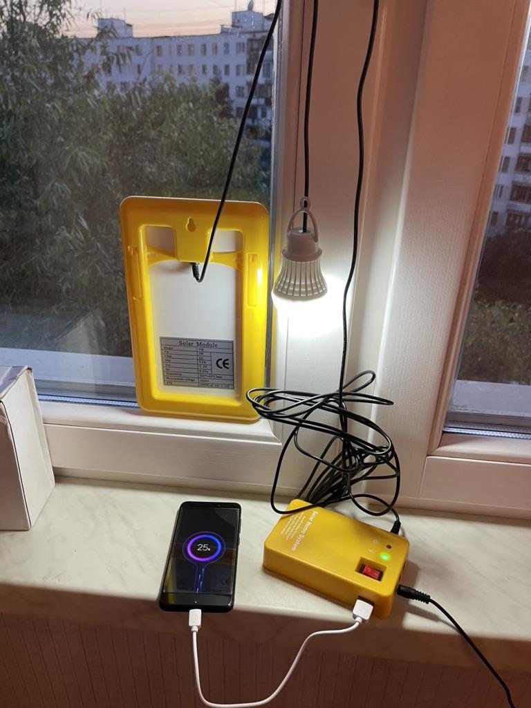 The assembly quality of the solar panel and the battery unit is not bad - the plastic is strong, the switch and sockets are well made. But the lamps themselves are quite weak - you have to be careful with them. They shine normally, as for their size: with one or two lamps, you can normally illuminate a room the size of a bathtub-toilet. Nowhere in the description is it described whether the solar panel can be kept in the rain (lamps and battery pack definitely not, that's clear). Most likely not, because there is a millimeter gap between the frame and the panel itself - it must be covered with a sealant. It is good that you can install a battery with a larger capacity. I did not check the phone's charge - there is no need. It took about half a month