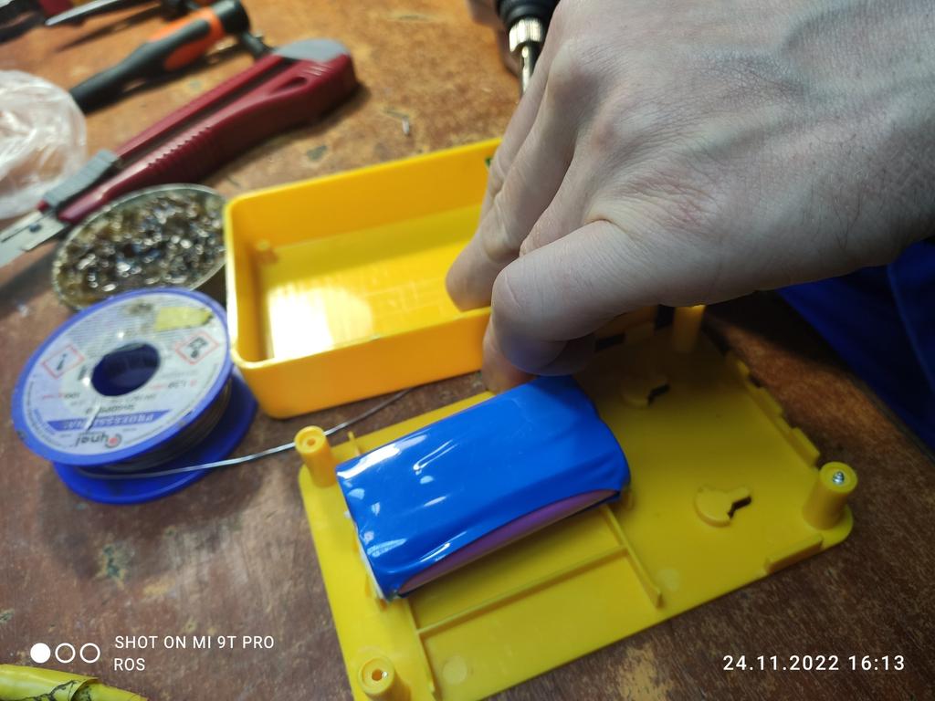 Surprised by the lightness of the battery pack. Disassembly revealed the presence of ONE 18650! There's plenty of space, I inserted three more, didn't add a BMS, it will last longer anyway.