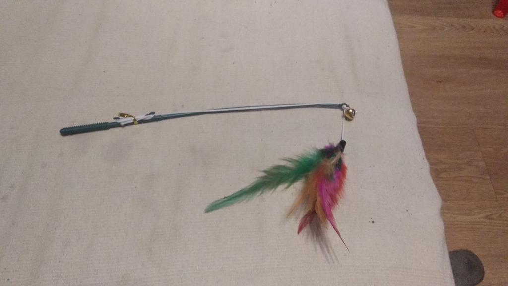 Puntos Pet Cat Puppy Teaser Bell Feather Retractable Stick Rod Funny Interactive Toy