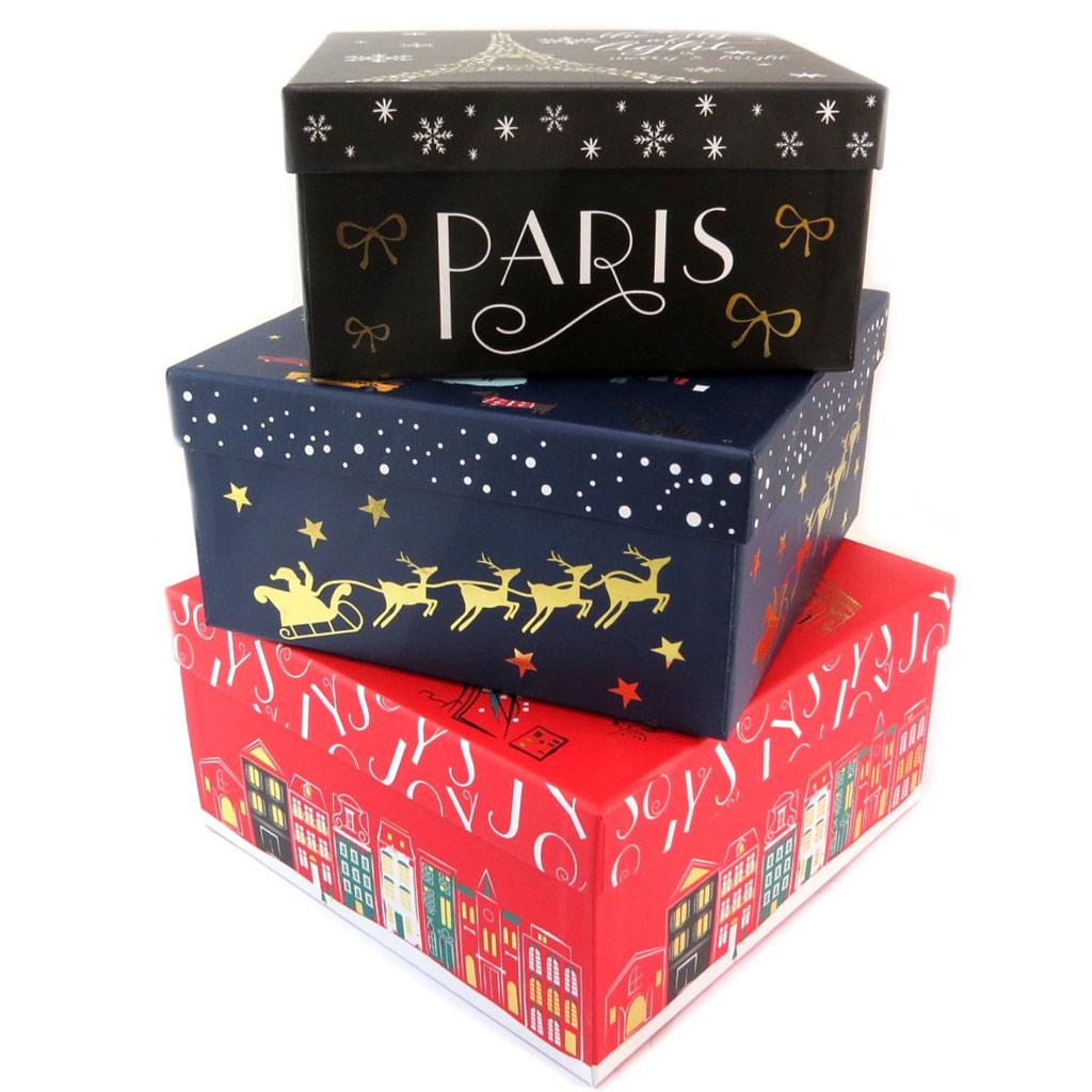 Les Trésors De Lily [P5718] - Set of 3 Nesting Boxes 'Christmas In Paris' Red Blue Black - 18.5x9 Cm