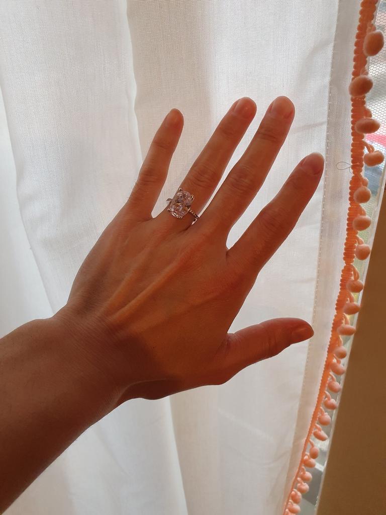 Such a brilliant addition to my rings collection!!! As you can see from the photos, it is gorgeous!!! It is extremely shiny, with different colours reflecting from light, beautiful little stones on each sides are a valuable addition! The rock is heavy, sign of high quality given the small price for it! The material of the ring itswlf feels durable and reliable! It fits well, and it brings that beautiful extra sparkle every woman deserves in her life! ✨ A must have! 💍💎