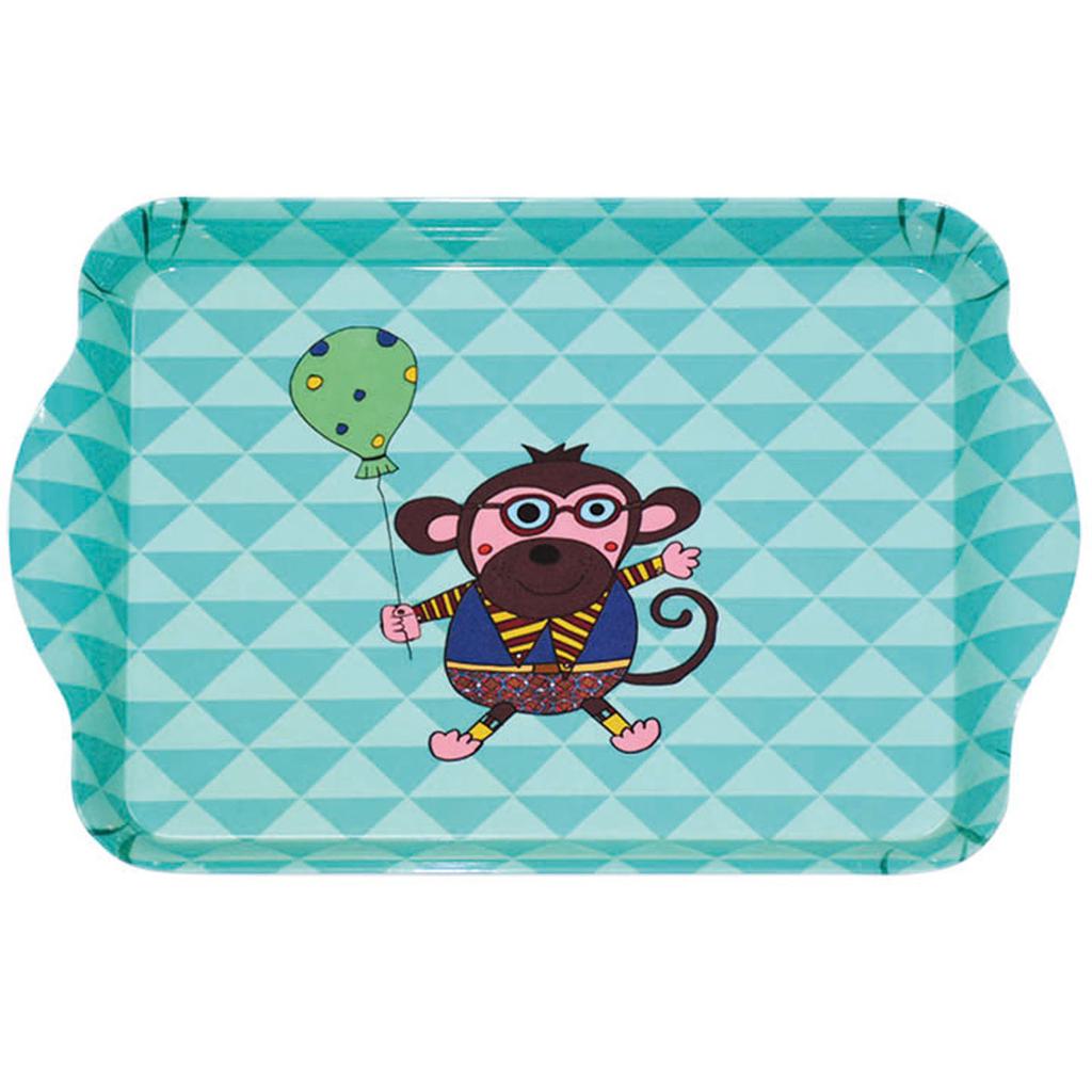 Les Trésors De Lily [R0655] - Small Melamine Tray 'Saperlipopette' Green Blue (Charlie Monkey) - 21x14 Cm