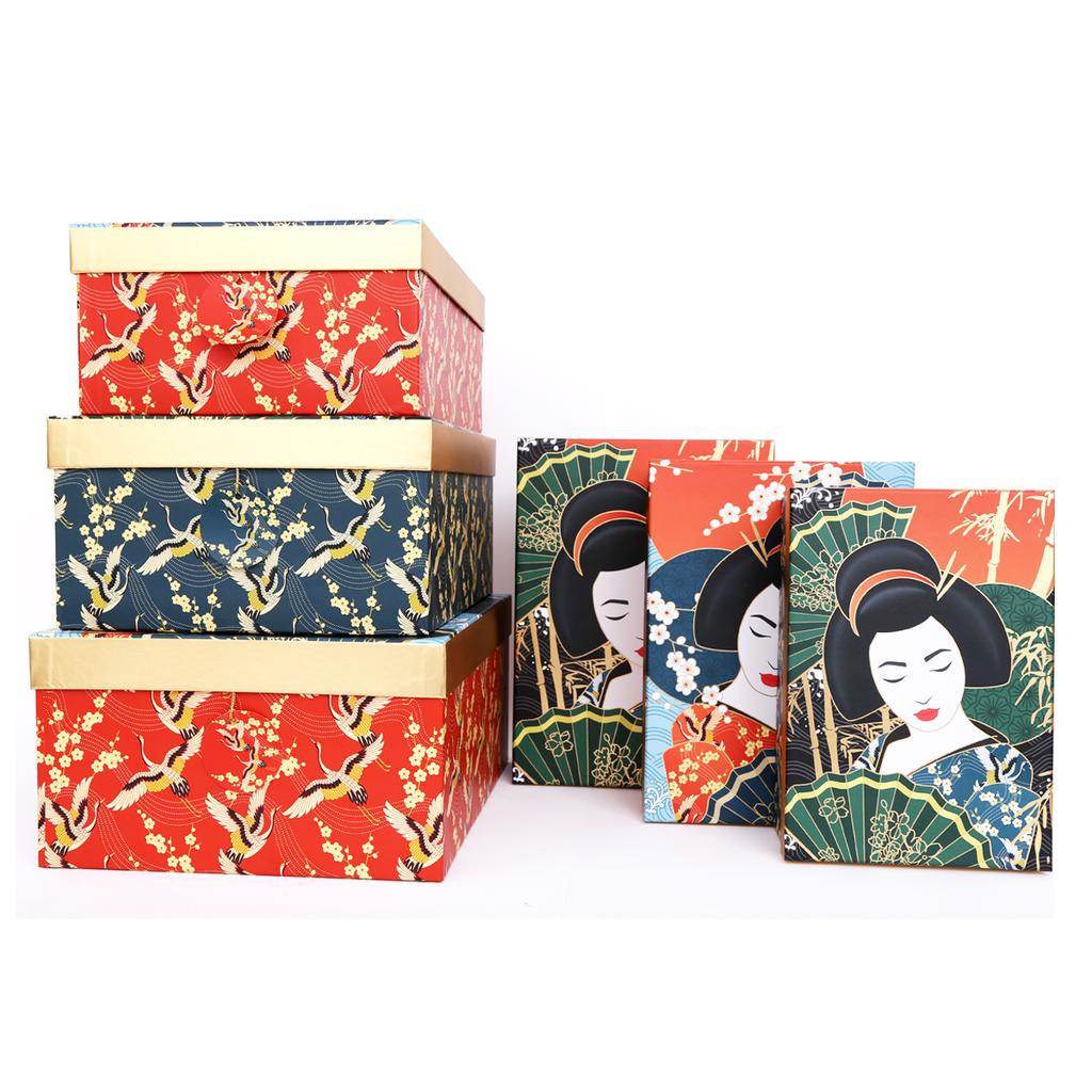 Les Trésors De Lily [R0913] - Set de 6 boîtes à Souvenirs 'Geisha' vert rouge bleu doré - 36x28x16 cm