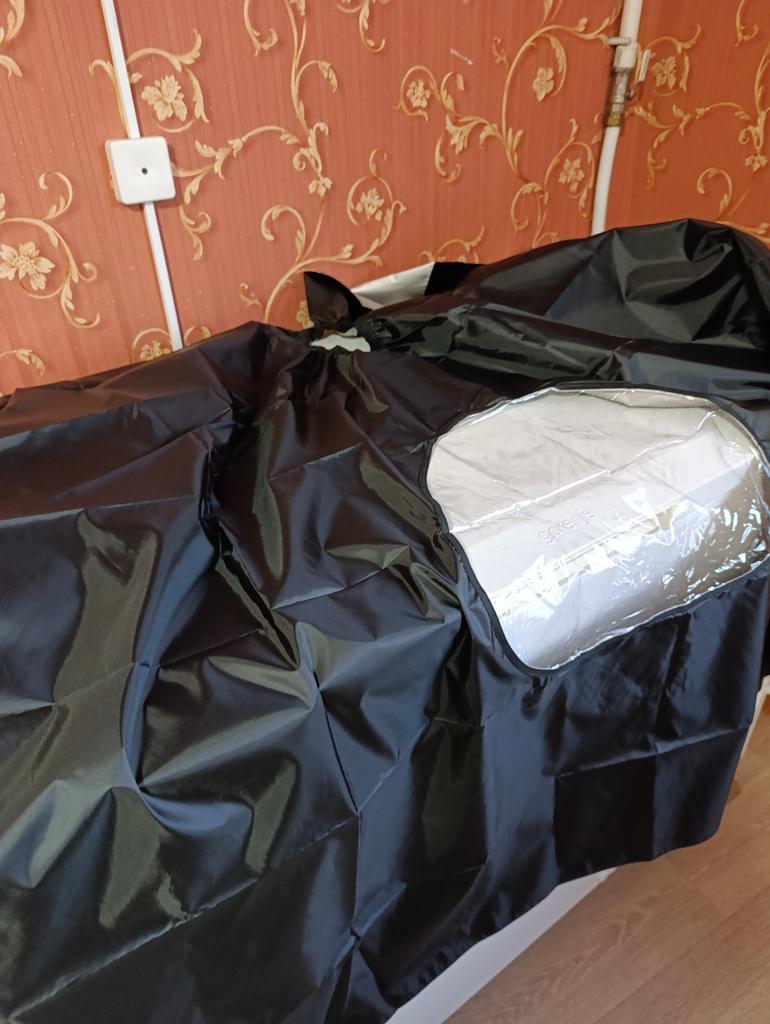 Short at the back. The hair is cut and falls back too. There was an unpleasant smell, I aired it out on the balcony.