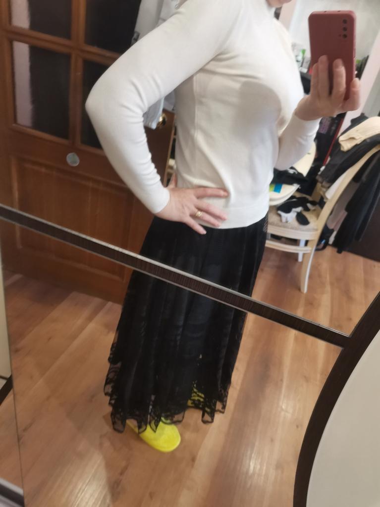 The blouse is good, soft knitwear, stretchy, I like these blouses, they are cozy and comfortable, I recommend them!