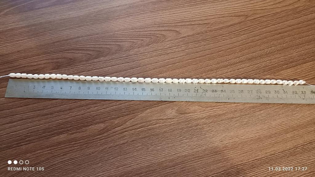I received the order. I did not like the pearls. The length does not correspond to the stated 36 cm (34.3 cm), some pearls are worn and poorly covered with mother-of-pearl. I am simply disappointed. I do not recommend it.