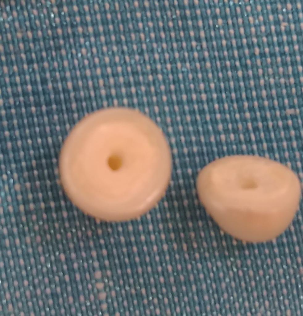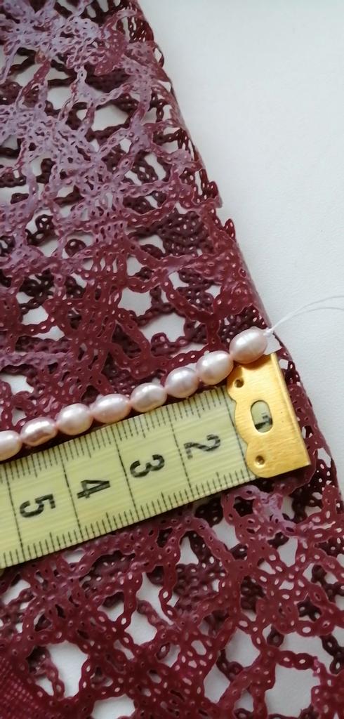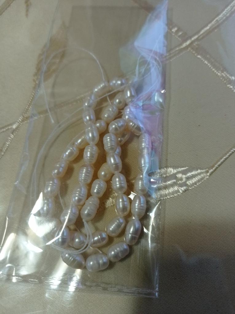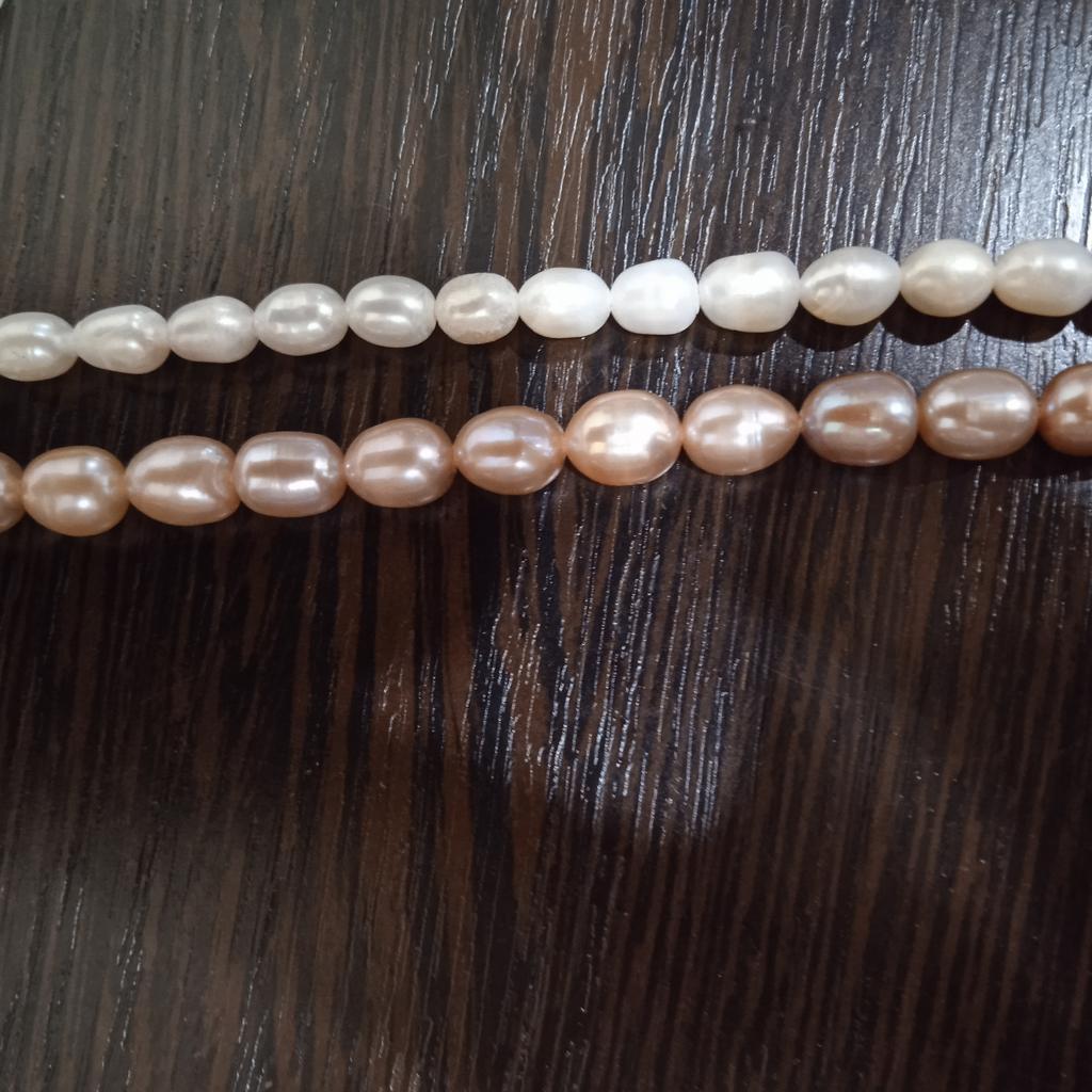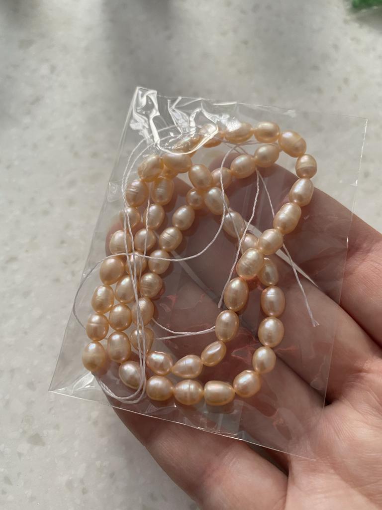 2x Rose' elongated freshwater pearls 5x6mm. Well, the size can't be right at all, because they are the same size as the 6x 7mm beads. Then they have no shape at all, the color also leaves a lot to be desired. Not at all like the promotional photos!!!🥹🙄🙃🤬🦋 See photos.