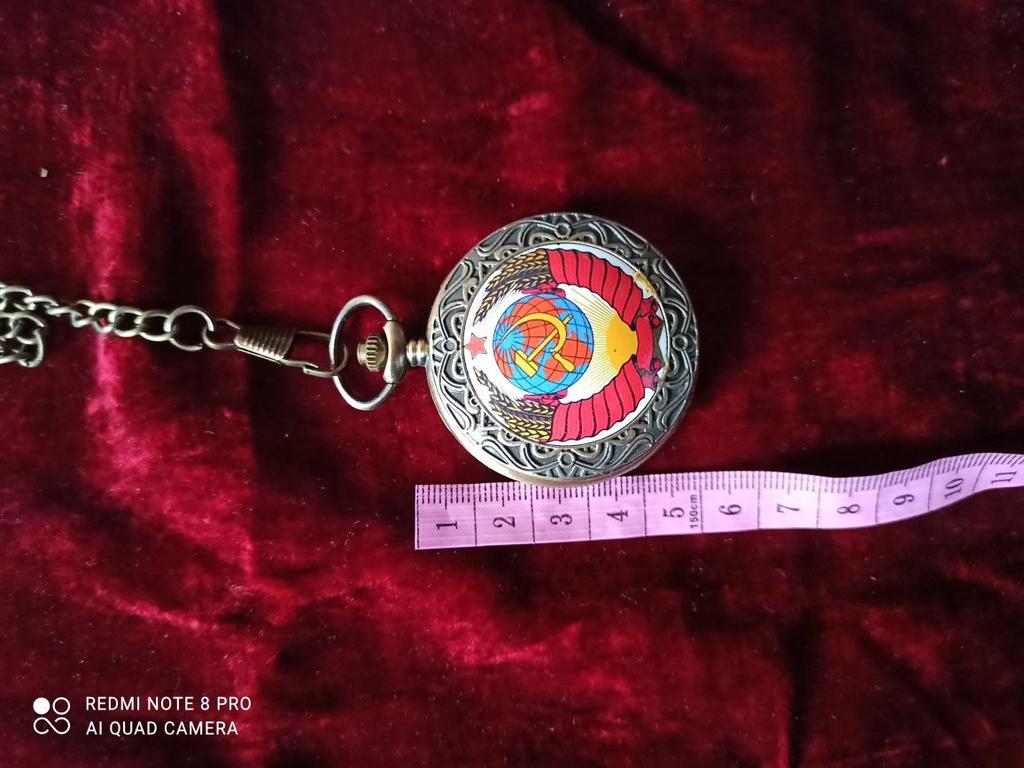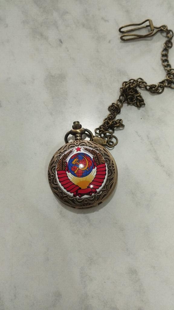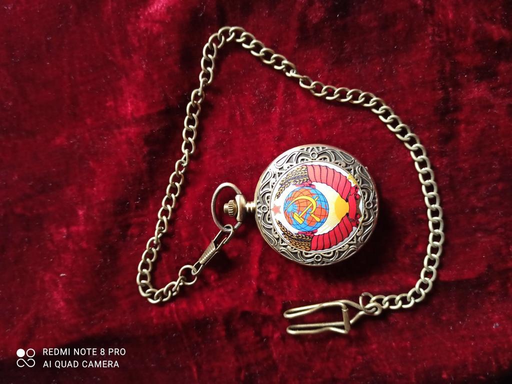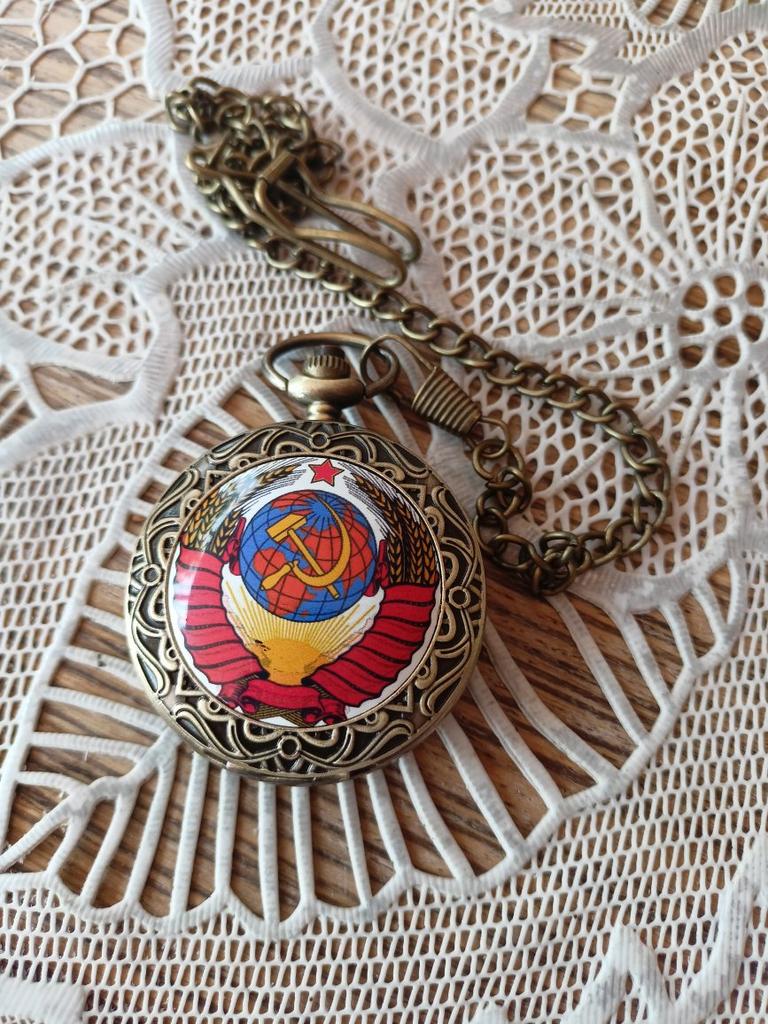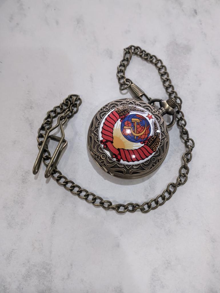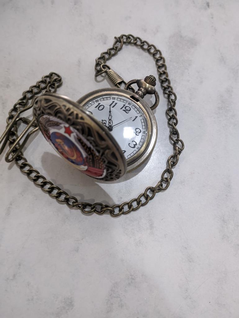 Retro Bronze USSR Soviet Sickle Hammer Quartz Pocket Watch Vintage Clock with Chain Women Men Gift