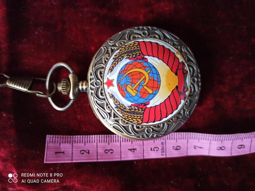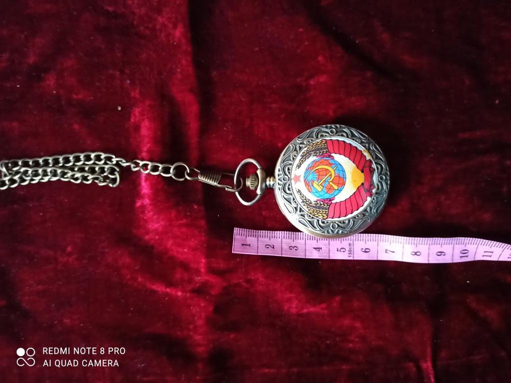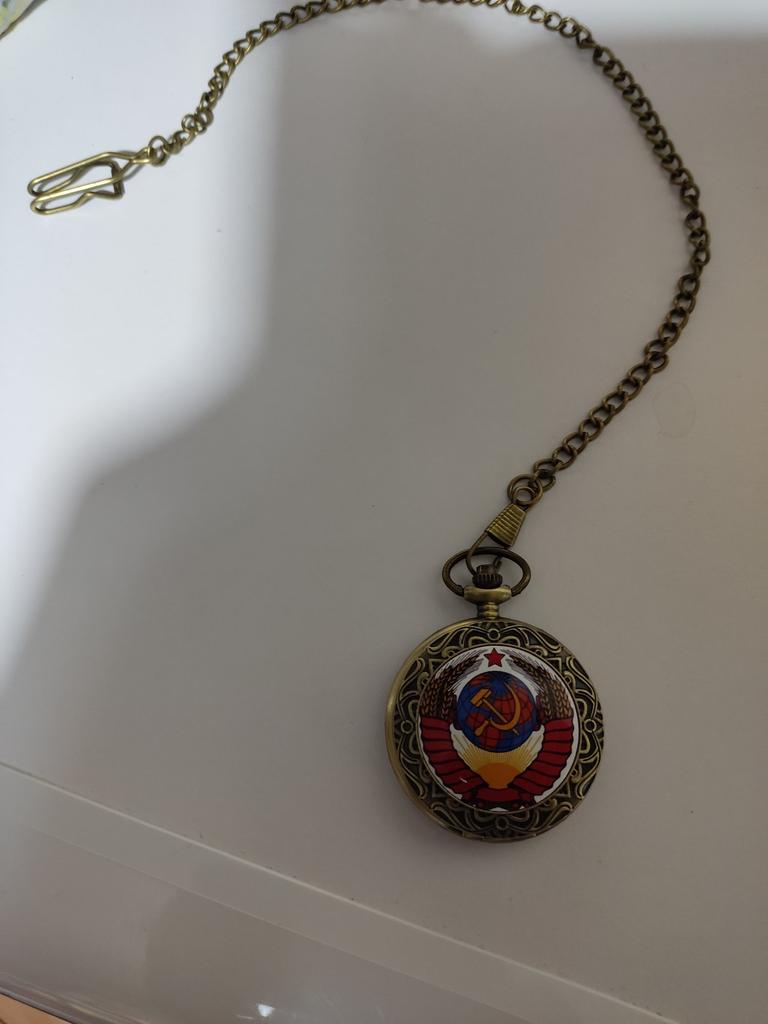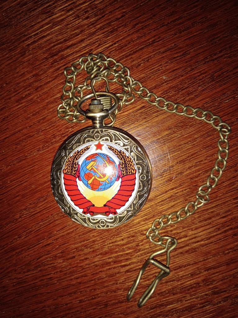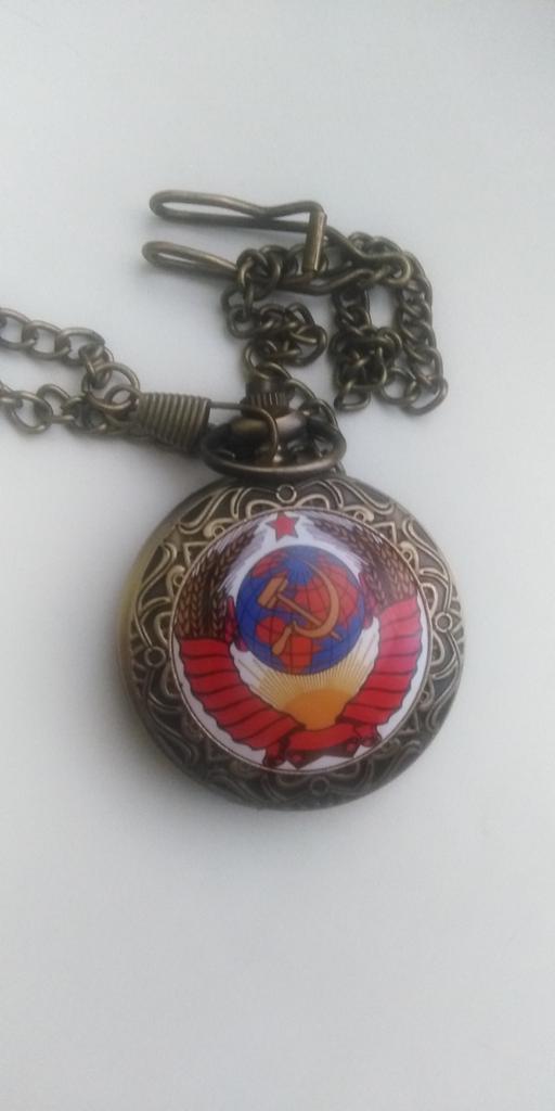 Retro Bronze USSR Soviet Sickle Hammer Quartz Pocket Watch Vintage Clock with Chain Women Men Gift